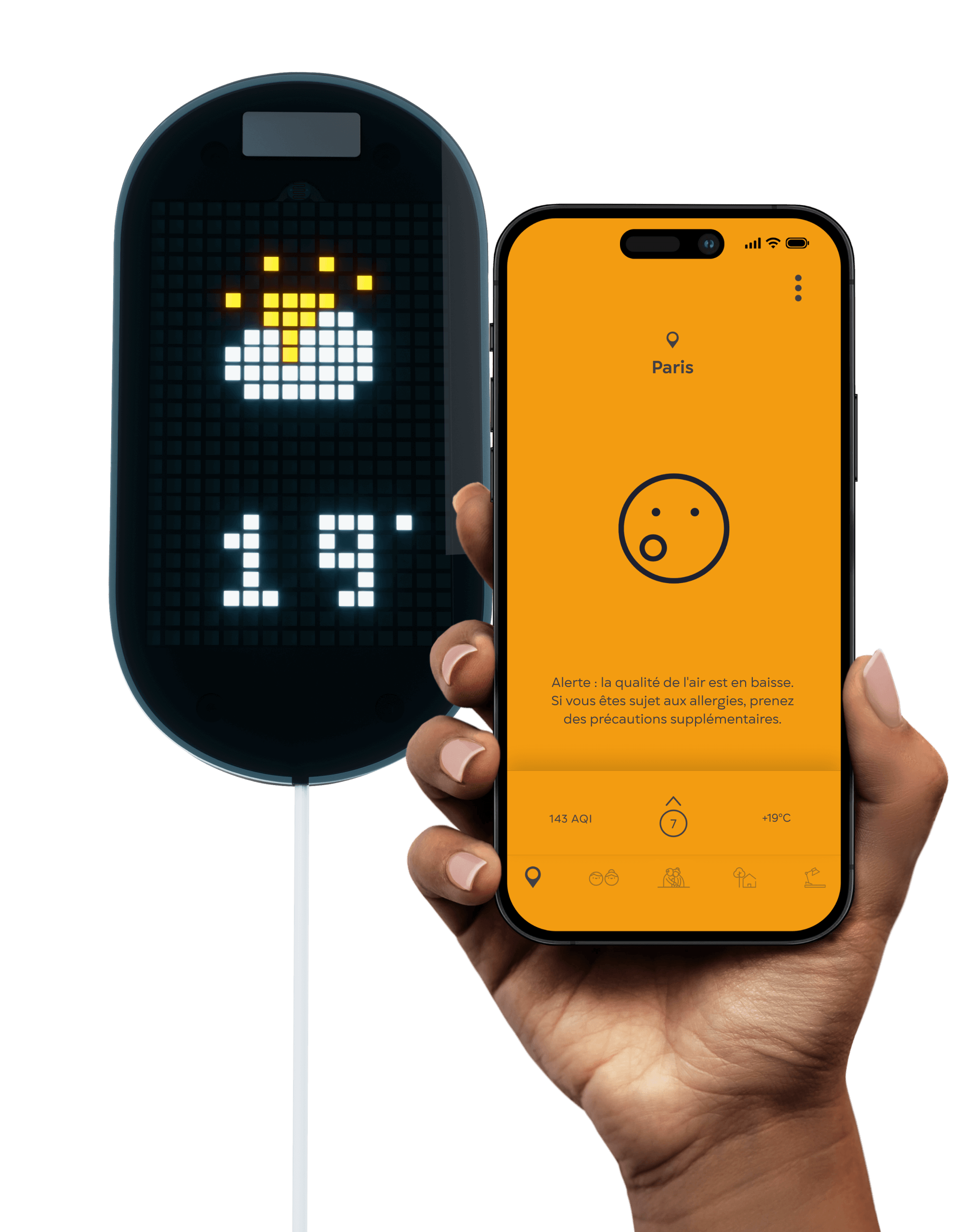 Grâce à une application gratuite, le capteur se connecte au réseau Wi-Fi de votre domicile et commence immédiatement à transmettre des données au réseau. Plus il y a de capteurs installés dans une zone, plus ils peuvent détecter et prédire avec précision le niveau de pollution.